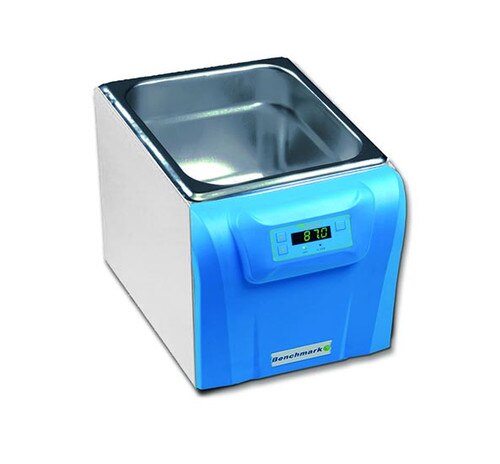 The MyBath 2L complete personal water bath by Benchmark Scientific® features easy to use controls that allow the user to digitally select and monitor temperature. Its hinged lid provides a secure, covered environment and can be flipped open (to the rear) or completely and instantly removed at the user’s option. The MyBath 2L has digital control (to 100°C) at an analog price for accuracy and convenience. The mini-sized water bath is less than 8 inches wide. Temperature Range: Ambient +5 to 100°C. Capacity: 2L. Temperature Accuracy: +/- 0.2°C at 37°C. Temperature Increments: 0.1°C. Temperature Uniformity: +/- 0.2°C at 37°C. Exterior Dimensions (W x D x H): 6.5 x 8 x 6 Inches. Chamber Dimensions: 5.5 x 6 x 4 Inches. Weight: 4.5lbs (2.0kg). Electrical Requirements: 115V, 50-60Hz, 400W. Tube Racks Included: None. Benchmark Scientific® #: B2000-2.