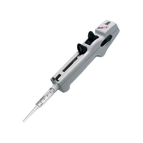 The BrandTech® HandyStep® Repeating Pipette provides unprecedented versatility in a purely mechanical repeating pipette. In conjunction with BRAND PD-Tip syringe tips, the HandyStep S offers nearly sixty different volume settings with accuracy, precision, and dependability. The slim design is lightweight, well-balanced, and provides a convenient control layout for smooth dispensing and one handed volume selection. Robust construction, inspired design, and innovative polymers deliver a dependable instrument. A purely mechanical design with no batteries to charge or replace means the HandyStep S is ready when you are. A convenient integrated volume table provides a quick reference for dispensed volumes. Ten sizes of PD-Tip syringe tips allow the HandyStep S to dispense 59 different volumes. Open design allows use of third party tips - no more being locked into a sole source. A tip ejection system allows the user to remove tips without handling. Includes shelf/rack mount, one each 0.1mL, 1mL, 10mL PD-Tip syringe tips, operating manual, two-year warranty, and performance certificate. BrandTech #: 705110.