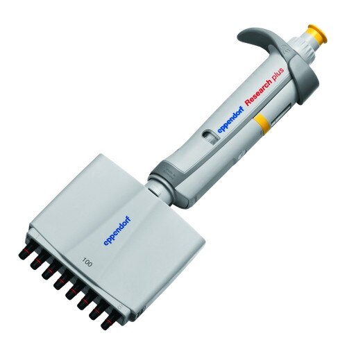 Eppendorf 3125000044 Research® plus 12-Channel Multichannel Pipette, Adjustable Volume: 10 to 100µL, Yellow Operating Button
