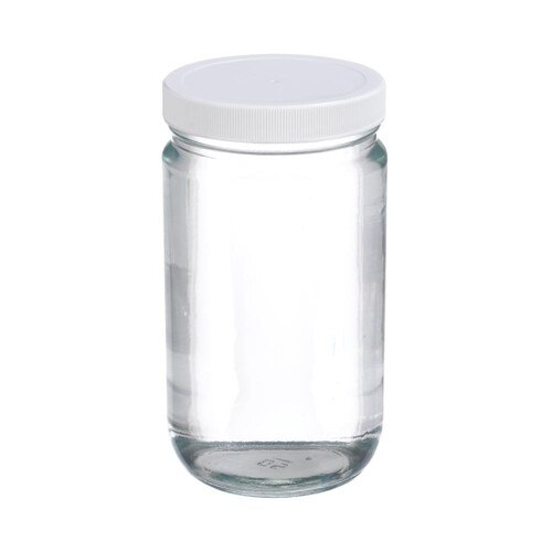 This 1000mL (32oz) clear straight-sided jar has a white polypropylene screw cap with a PTFE/foam liner. It is manufactured from Wheaton '800' glass, which meets USP Type III standards. Straight-sided walls allow for complete removal of contents. The glass jar is ideal for soil sampling and environmental applications. Jar Material: Type III Soda Lime Glass. Jar Color: Clear. Jar Style: Straight-Sided. Cap Material: Polypropylene. Cap Color: White. Screw Cap Size: 89-400. Cap Liner Material: PTFE/Foam. Diameter x Height: 95 x 170mm. Capacity: 1000mL (32oz). Wheaton #: W216912.